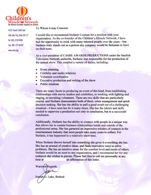 “She has the ability to pull a good result out of a challenging situation — I have seen her do it many times.” — Joe Lake, Co-Founder of Children’s Miracle Network